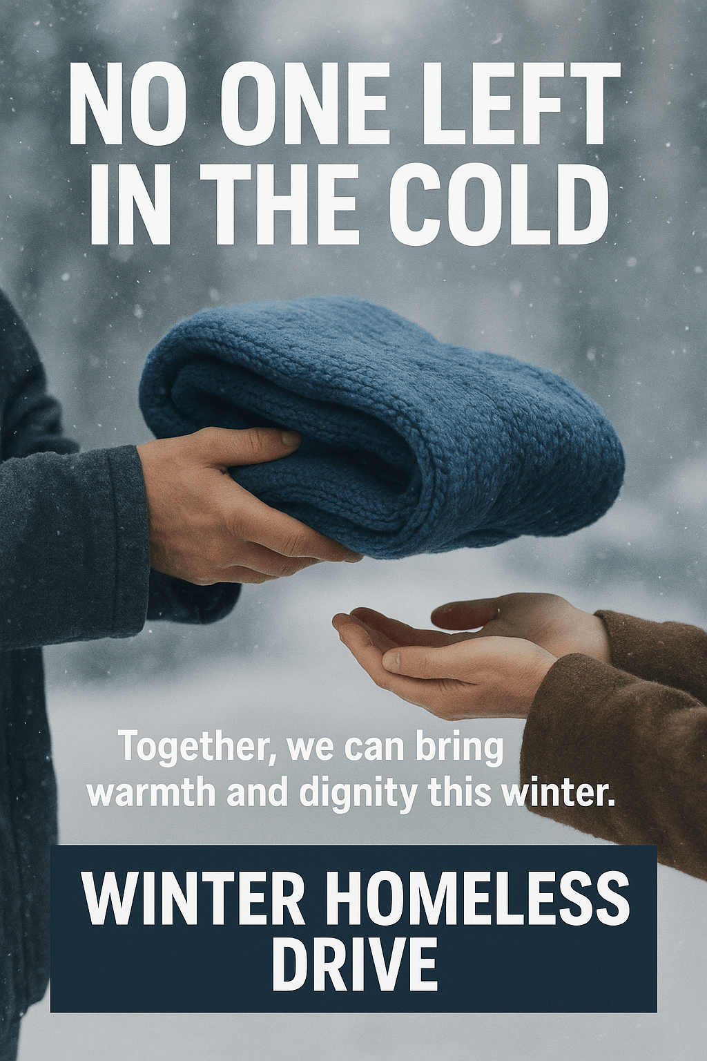 This winter, you can bring warmth and dignity to our homeless neighbors. 🧥🍲💙✨ Donate coats, blankets, or hot meals